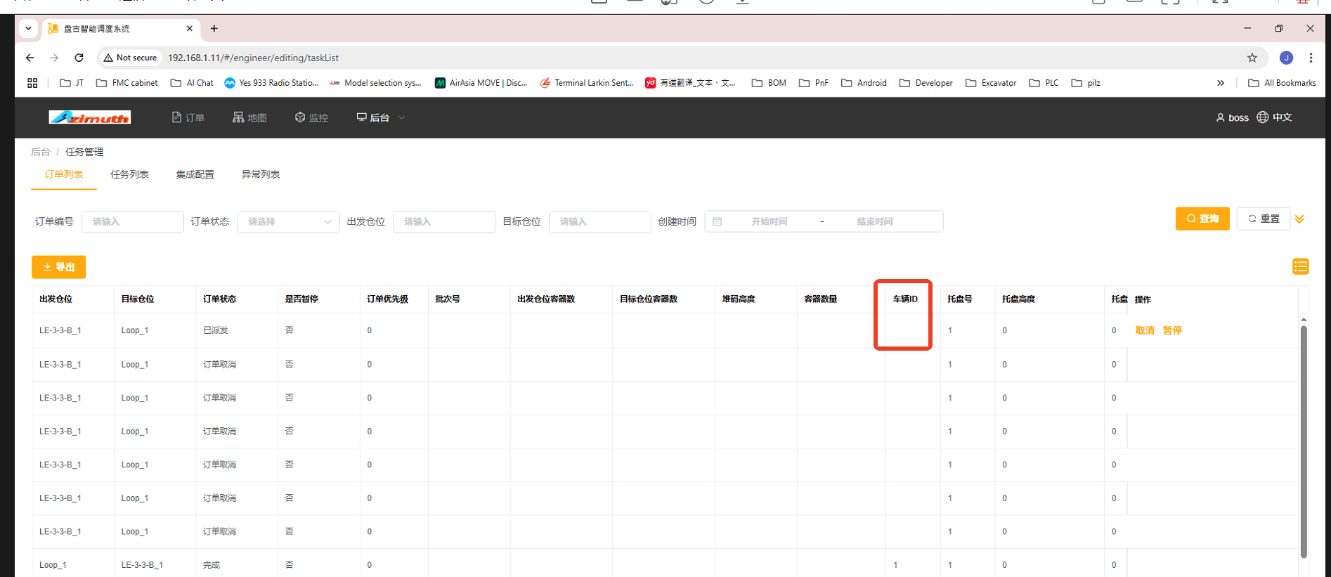 打开客户反馈,订单页面发任务,车不能动。查看车辆状态都正常,订单列表有任务没分配到车辆。