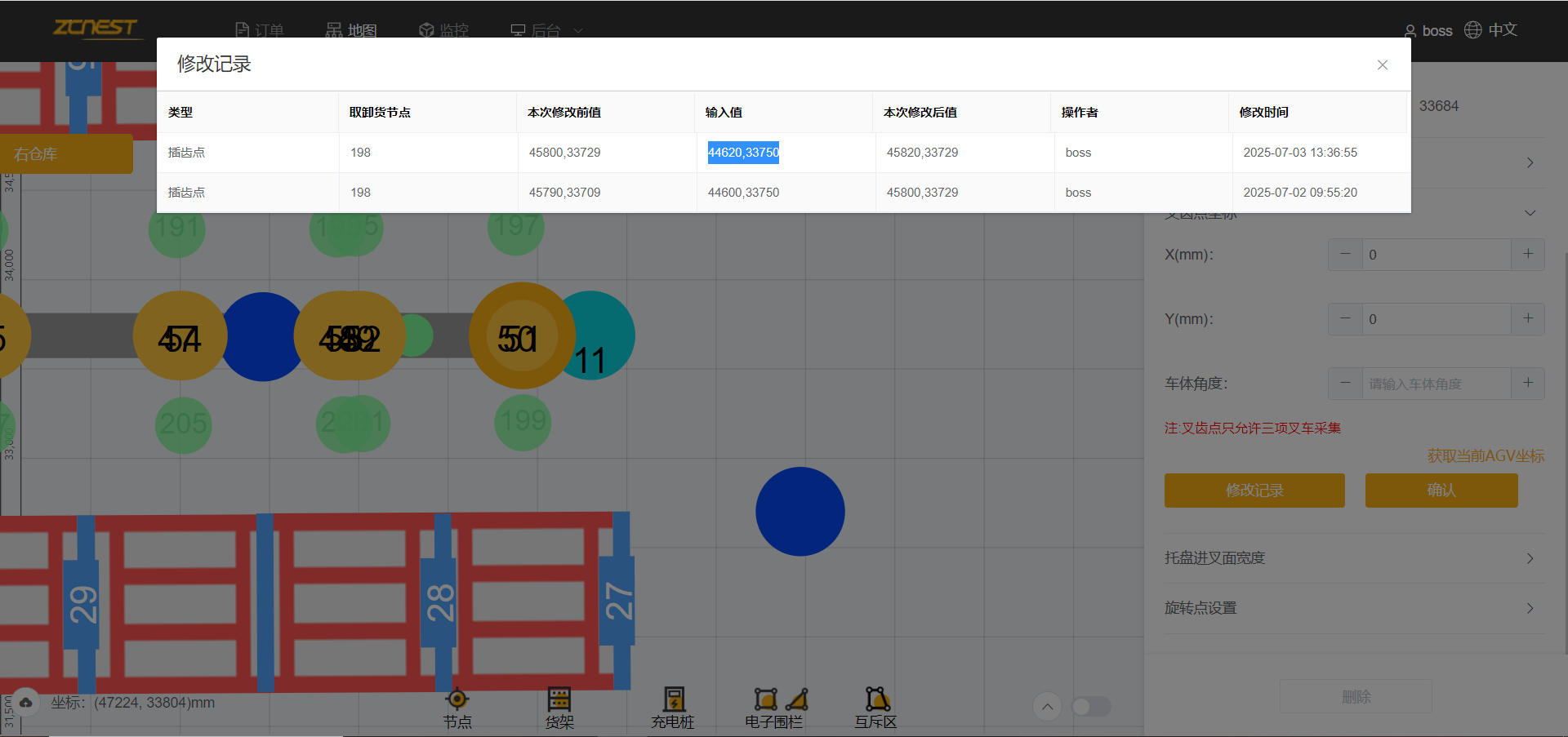 - 主题 从 三向车调度直接发订单任务车子卸货会跑偏十几公分(27号货架位置,靠墙很近) 变更为 三向车调度直接发订单任务车子卸货会跑偏十几公分(27号货架位置,靠墙很近)小车明显没有减速