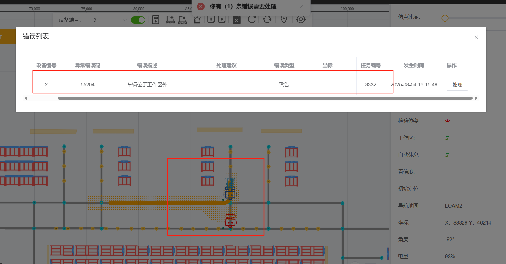 已关闭2号车报警不在工作区后锁定点丢失,3号车直接规划路径与2号车重叠,差点儿撞车,人工按停了
