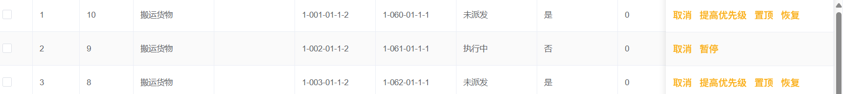 如截图3个任务,车辆优先执行中间库位任务,后一个任务就无法执行
