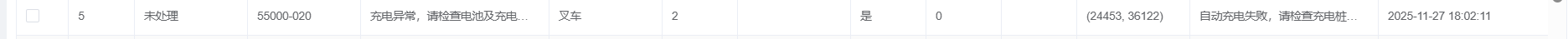 2号车周五晚间自动充电异常 导致未能充电成功。周末在充电桩低电量关机 周一补电后充电 电量低报警无法消除。